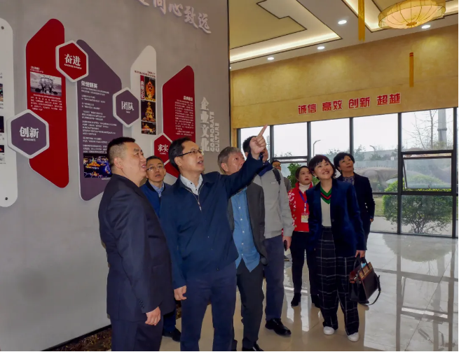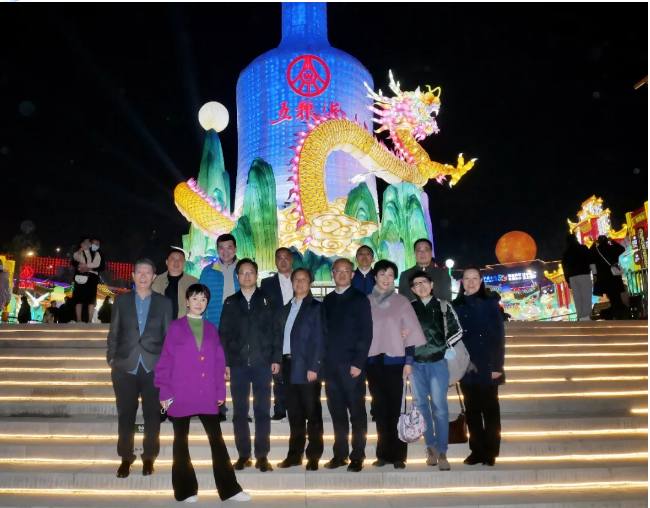 (考察團(tuán)一行在公司創(chuàng)意、設(shè)計(jì)、制作的《五糧液》燈組合影)