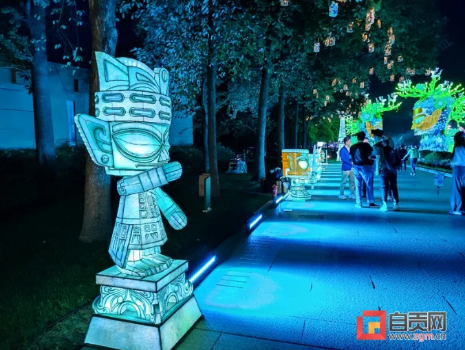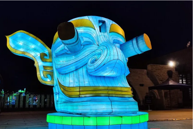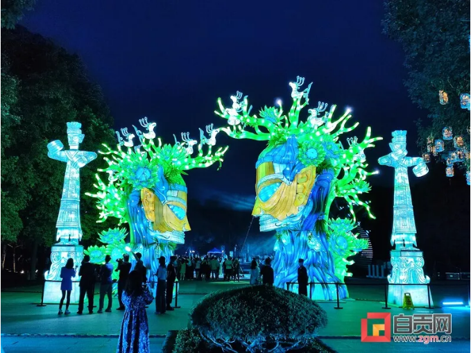 這次燈展由中青旅聯(lián)科策劃、自貢燈貿(mào)集團(tuán)打造,設(shè)計(jì)靈感都來(lái)自于三星堆實(shí)體文物、考古發(fā)現(xiàn),包括包括青銅大立人、青銅縱目面具、青銅神樹、黃金面具、青銅神鳥等。